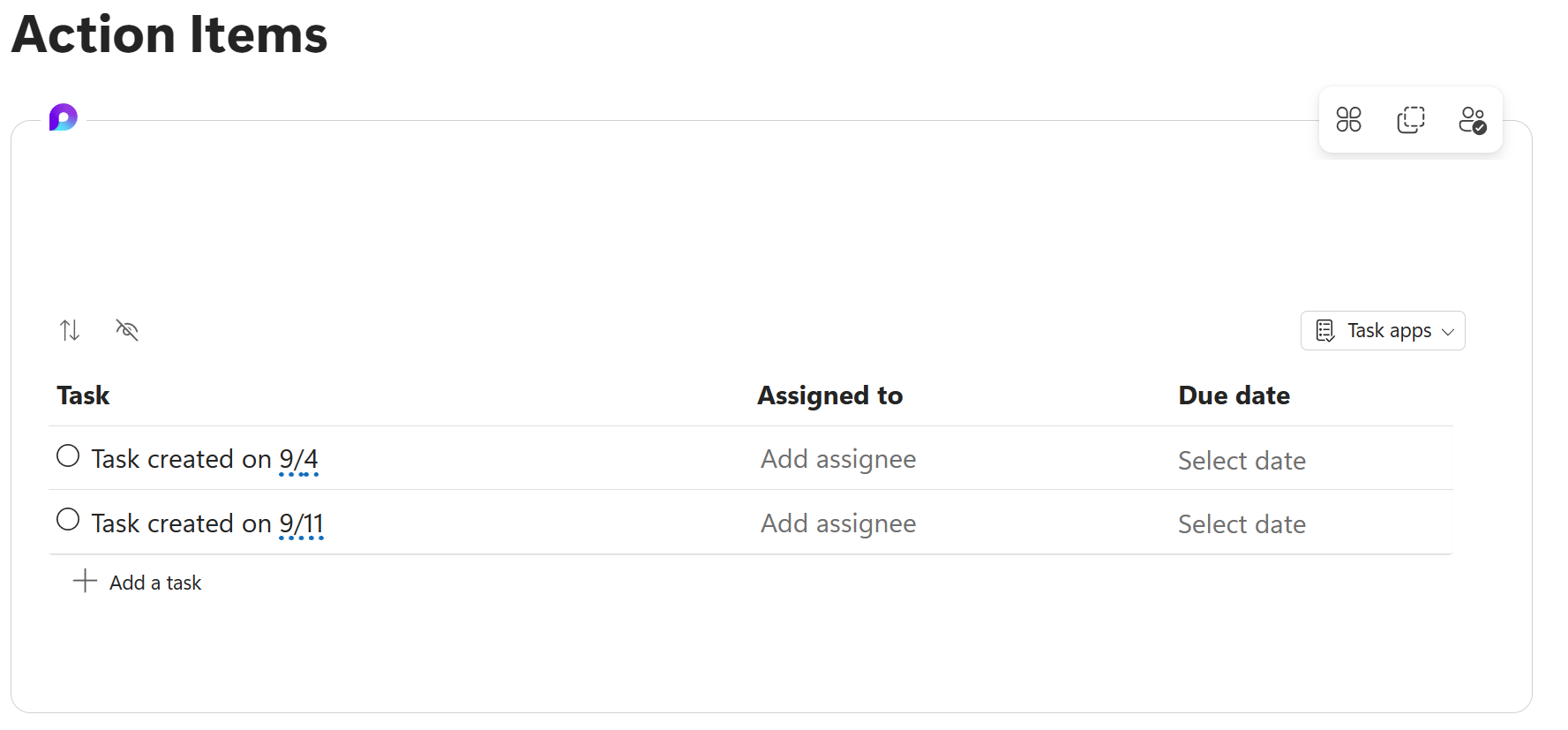 Unfortunately, I’ve yet to find a great workaround for this. I first tried nesting a Loop Component containing a Task List into the series’ Loop Component, but it looks like the Loop Components in Teams’ meeting notes don’t support nested Loop Components. At the time of writing, only a link was pasted instead of an expanded Loop Component: